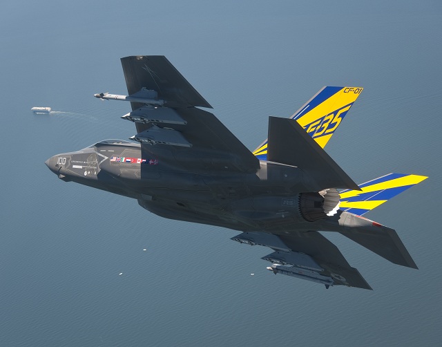 據(jù)美國海軍航空系統(tǒng)司令部2012年7月3日報道 艦載型F-35戰(zhàn)機于6月27日完成了首次掛載外部武器的飛行。海軍試飛員駕駛編號CF-1的飛機,掛載AIM-9X“響尾蛇”導(dǎo)彈以測試飛行參數(shù)和飛機共振情況。