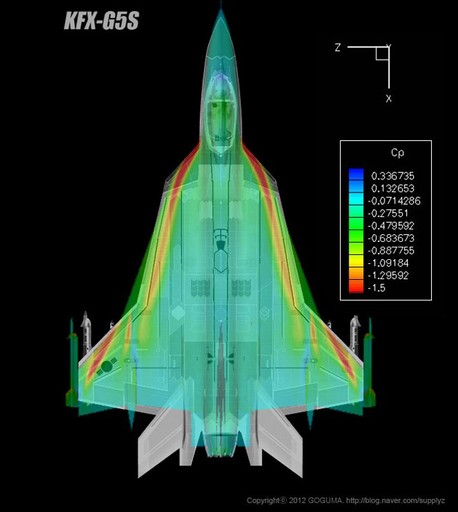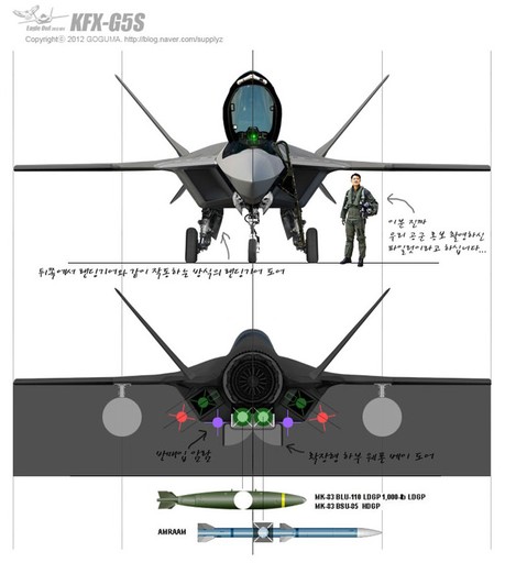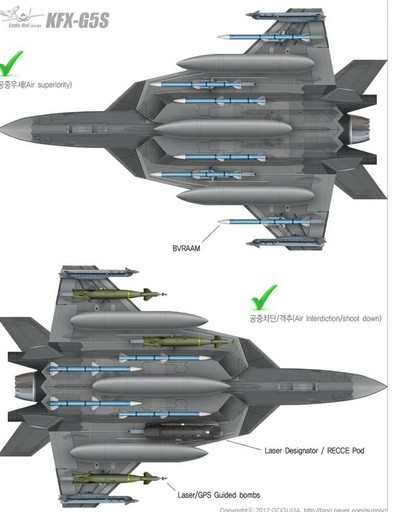 韓國(guó)公布的這組KFX-G5S戰(zhàn)機(jī)圖片中的另一關(guān)鍵技術(shù)要點(diǎn)是,有別于之前任何一款第五代戰(zhàn)機(jī)方案,韓國(guó)似乎在構(gòu)想KFX-G5S型戰(zhàn)機(jī)之初,就將外部掛載視作主要性能,而非像美制第五代戰(zhàn)機(jī)那樣,將外部掛載視作特殊情況下的無(wú)奈之舉。從韓國(guó)為KFX-G5S戰(zhàn)機(jī)規(guī)劃的掛載方案來(lái)看,作為輕型戰(zhàn)機(jī)的KFX-G5S,在無(wú)內(nèi)部掛載的情況下,外掛點(diǎn)超過(guò)10個(gè),基本達(dá)到F-16戰(zhàn)機(jī)的水平。如果再考慮第五代戰(zhàn)機(jī)較之第四代戰(zhàn)機(jī)較大的內(nèi)部空間帶來(lái)的機(jī)內(nèi)載油優(yōu)勢(shì),KFX-G5S型戰(zhàn)機(jī)的外掛能力應(yīng)在F-16之上。