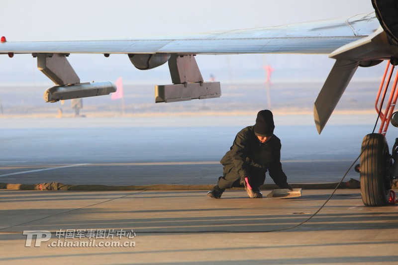 2013年1月6日,空軍華北機場某航空兵師在這一天新年首飛。在進(jìn)行了兩天的充分準(zhǔn)備之后,機務(wù)人員在早晨6點30分就準(zhǔn)時來到外場。上午9點整,數(shù)架殲十戰(zhàn)機準(zhǔn)時升空,開始了一天的訓(xùn)練。記者在外場有幸記錄下這冬日陽光里精彩的飛行場景。(來源:中國軍網(wǎng) 苑小偉攝影報道)
