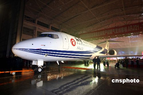 資料圖:中國首架自主知識產(chǎn)權(quán)噴氣支線客機ARJ21-700飛機
