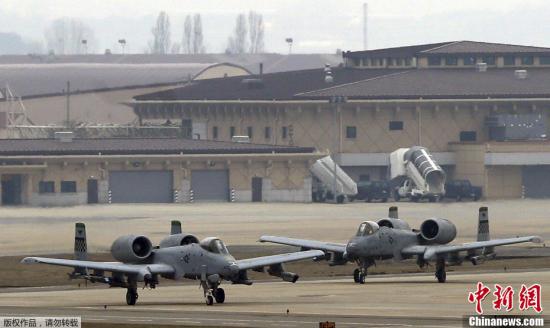 當?shù)貢r間4月2日,位于韓國首爾以南的烏山空軍基地內(nèi),駐韓美軍戰(zhàn)機頻繁進行起降訓(xùn)練。圖為停放在機場上的美軍A-10攻擊機。
