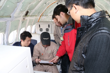 航前,技術(shù)人員對(duì)天線進(jìn)行檢查。
