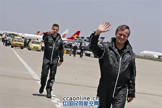 法國“百年靈”表演隊(duì)的成員跟記者揮手示意。攝影:王誠