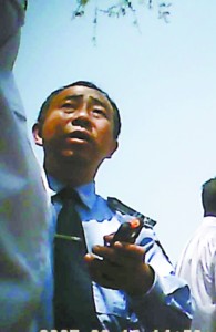 第一個(gè)趕到現(xiàn)場(chǎng)搶救傷者的他正在向領(lǐng)導(dǎo)匯報(bào)當(dāng)時(shí)的情況。記者 陶剛 攝