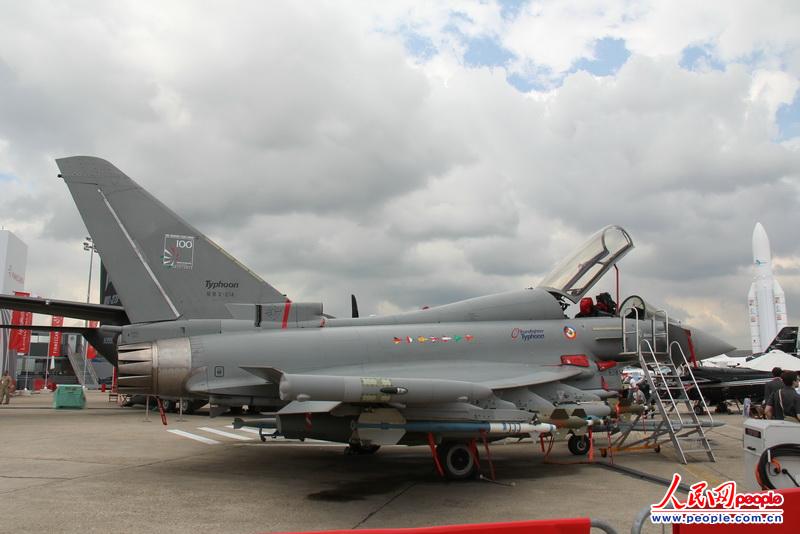 第50屆法國(guó)巴黎航展17日-23日在巴黎郊區(qū)的布爾歇機(jī)場(chǎng)開幕,眾多國(guó)際知名的新型軍民用飛機(jī)匯聚巴黎。圖為歐洲“臺(tái)風(fēng)”戰(zhàn)斗機(jī)靜態(tài)展示。(李志偉 攝影)