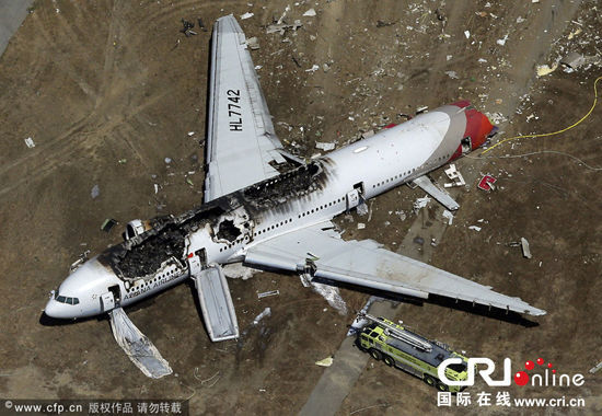 韓亞客機(jī)失事現(xiàn)場(chǎng)。圖片來(lái)源CFP