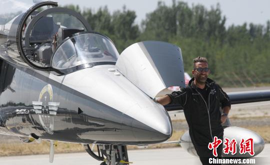 8月14日, 國際著名飛行表演隊——百年靈噴氣機表演隊正在克拉瑪依機場做暫短展示表演!≈芙帷z
