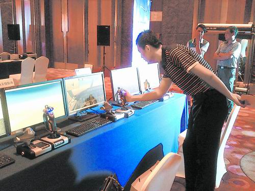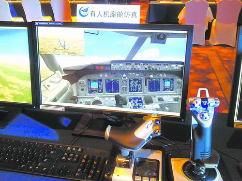 操控系統(tǒng)近年來取得長足進(jìn)步。圖為觀眾體驗(yàn)無人機(jī)操控