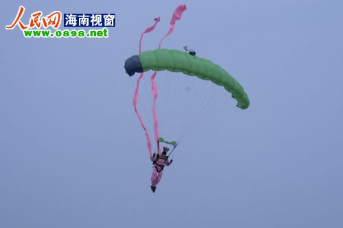 17日上午,2011環(huán)海南飛行拉力賽在?谂e行了隆重的開幕儀式。直升機同心圓旋轉、模型機超低空飛行、跳傘隊上演“七仙女下凡”……八一跳傘隊、河南跳傘隊、翱翔中國航空模型特技飛行表演隊等在萬綠園旁人工島上演了一場華麗的飛行表演秀,一系列超乎想象的精彩表演讓現(xiàn)場觀眾嘆為觀止。