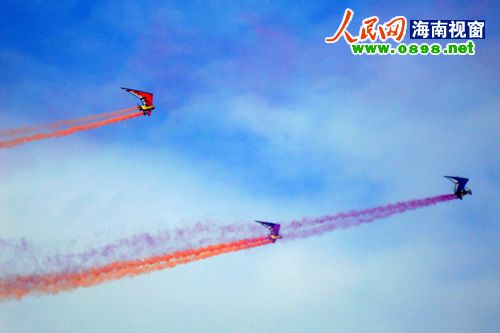 21日上午8點(diǎn)左右,經(jīng)過一天的休整,2011環(huán)海南島飛行拉力賽東方段在東方市邊貿(mào)城正式開幕。比起前幾日的大風(fēng)天氣,今天的風(fēng)速明顯減弱,在?谖茨芘c廣大市民和游客見面的熱氣球、動(dòng)力傘、動(dòng)力三角翼今天也終于如愿升空,在東方的碧海藍(lán)天間盡情的翱翔。大批東方市民趕到現(xiàn)場(chǎng),一幕幕精彩的飛行表演引得現(xiàn)場(chǎng)尖叫連連、掌聲不斷。