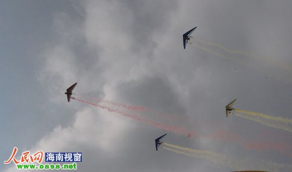 2011環(huán)海南島飛行拉力賽將于12月30日在興隆舉行,為使比賽圓滿結(jié)束,12月29日,組委會(huì)舉行了閉幕式表演合練,精彩的表演引來(lái)周圍群眾陣陣歡呼。