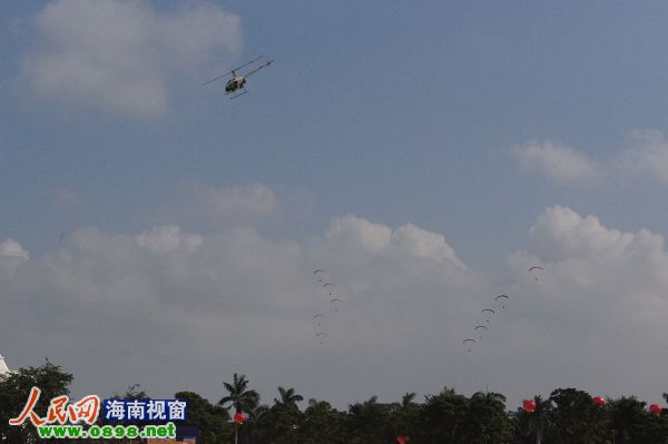 2011環(huán)海南島飛行拉力賽將于12月30日在興隆舉行,為使比賽圓滿結束,12月29日,組委會舉行了閉幕式表演合練,精彩的表演引來周圍群眾陣陣歡呼。