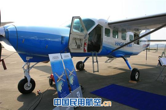 3月27日,為期三天的2012亞洲公務(wù)航空會議及展覽會(ABACE2012)在新落成的上;艨颂窖蠊珓(wù)航空中心開幕。圖為豪海通航攜賽斯納飛機(jī)亮相上海ABACE2012。攝影:安利國