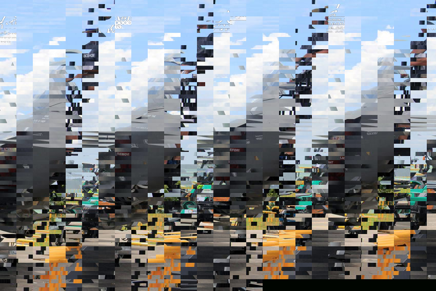 工作人員為F-35型“閃電II”戰(zhàn)斗機做清潔工作。