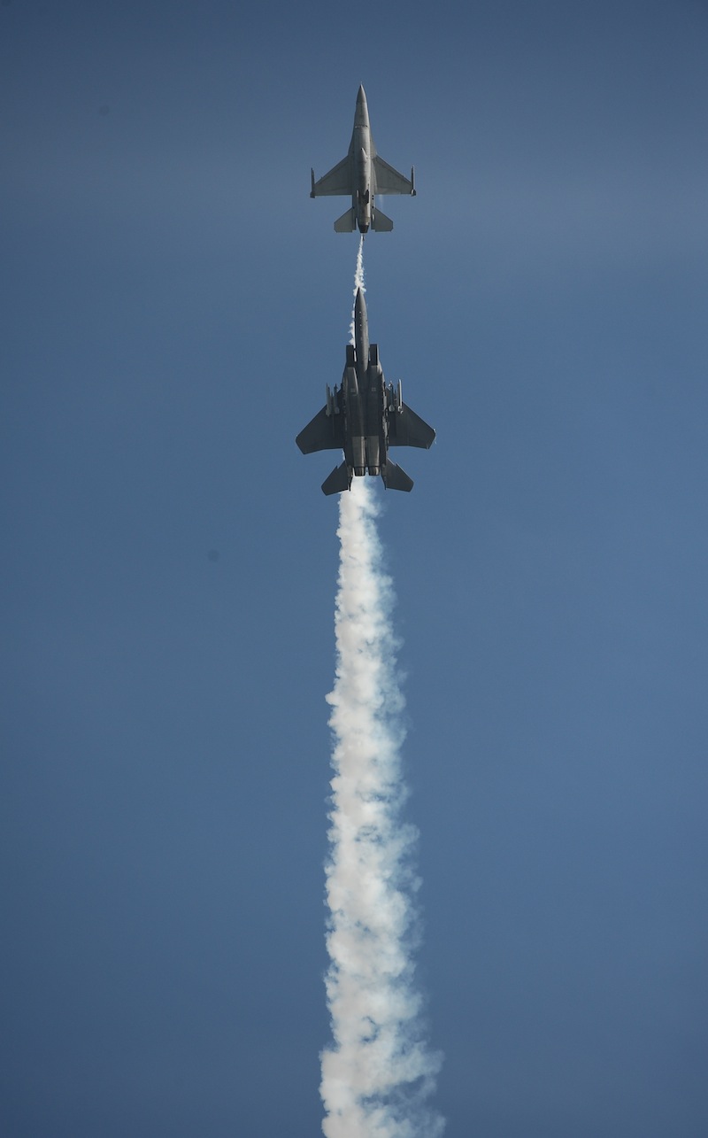 第三屆新加坡航展即將于2月14日正式開(kāi)幕。新加坡空軍F-15SG型多用途戰(zhàn)斗機(jī)與F-16C型戰(zhàn)斗機(jī)緊鑼密鼓地進(jìn)行飛行預(yù)演
