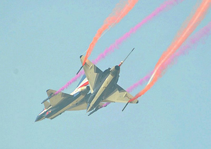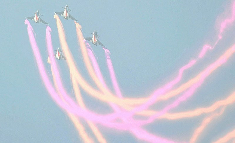 【環(huán)球網(wǎng)赴珠海航展特派報(bào)道組綜合報(bào)道】第九屆中國國際航空航天博覽會(huì)(珠海航展2012)將于11月13日-18日在廣東省珠海市金灣區(qū)三灶鎮(zhèn)隆重舉行。開展當(dāng)日,中國空軍八一飛行表演隊(duì)的6架殲-10戰(zhàn)機(jī)翱翔藍(lán)天,漫步云端。