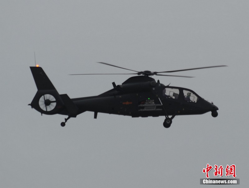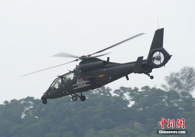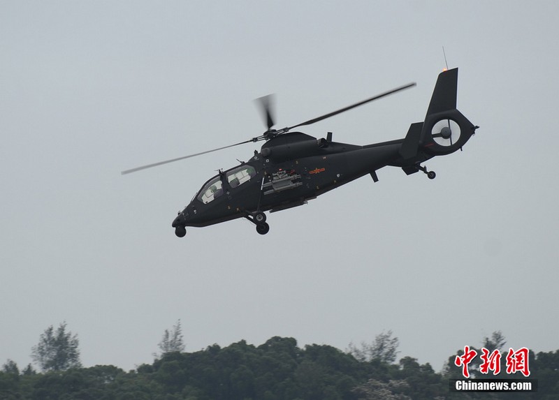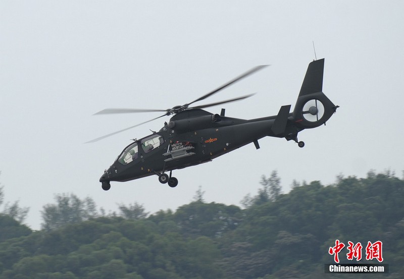 中新網(wǎng)珠海11月11日電(陳海峰) 中國(guó)陸航直19武裝直升機(jī)11日在珠海航展上空進(jìn)行了精彩的飛行表演。