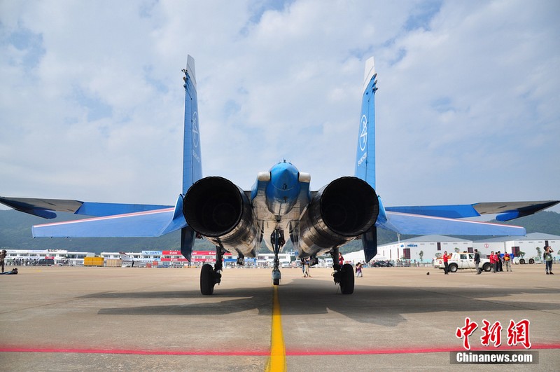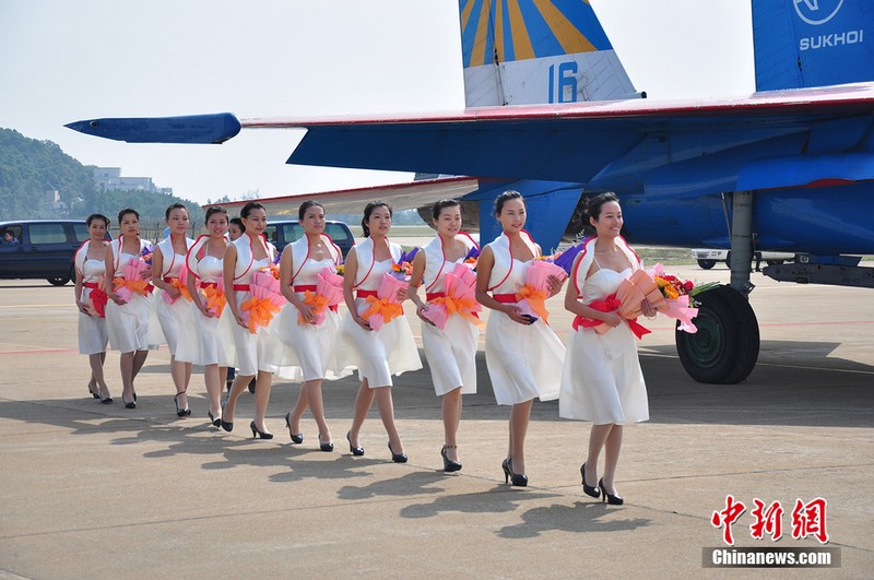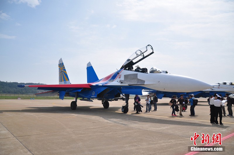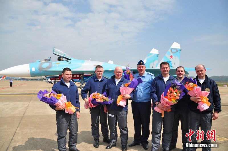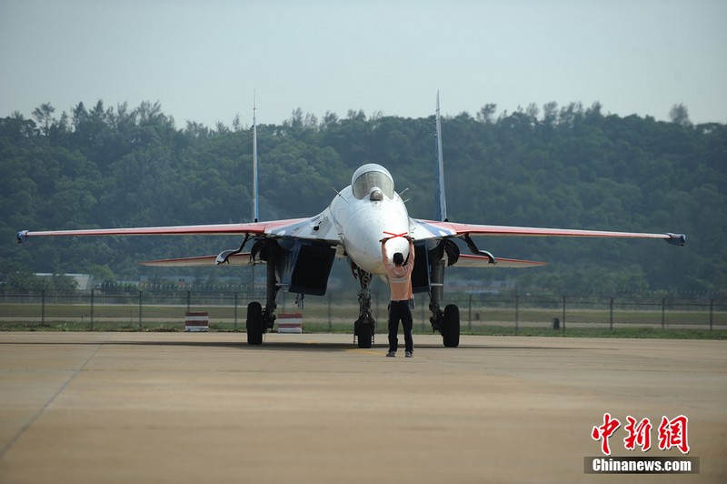 中新網(wǎng)珠海11月11日電(陳海峰) 11日中午12點(diǎn)25分,“俄羅斯勇士”特技飛行表演隊(duì)在闊別6年之后,再次來(lái)到珠海航展。俄羅斯這次一共派出5架蘇27來(lái)到珠海,將在航展上進(jìn)行飛行表演與靜態(tài)展示。