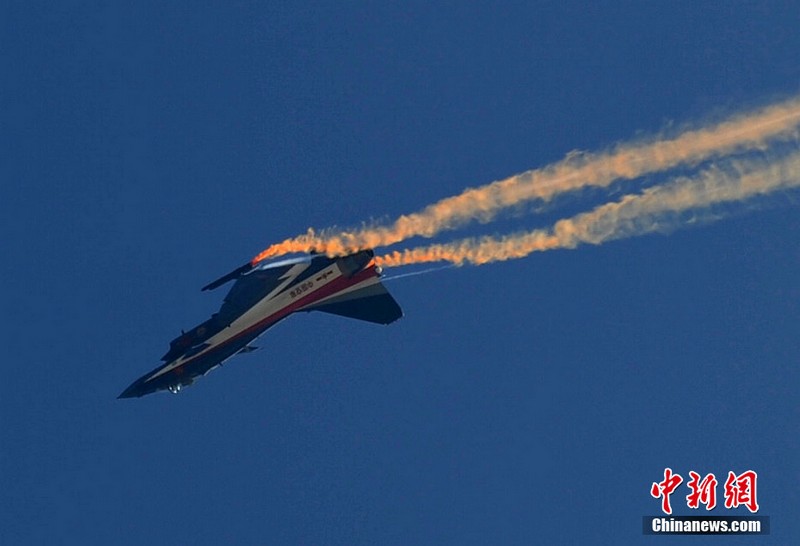 中國空軍八一飛行表演隊(duì)上演了“向上開花”、“雙機(jī)對(duì)沖”、“小半徑轉(zhuǎn)圈”等精彩動(dòng)作。記者曾多次觀看過八一飛行表演隊(duì)的表演,而這次是最精彩的一次!