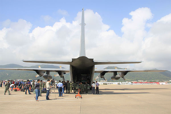 巴基斯坦空軍先遣機(jī)C-130運(yùn)輸機(jī)于11月9日中午抵達(dá)珠海航展現(xiàn)場(chǎng)。據(jù)悉,今天下午巴基斯坦空軍梟龍戰(zhàn)斗機(jī)也將抵達(dá)珠海。
