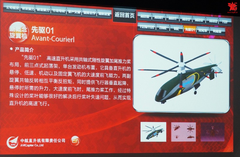 人民網(wǎng)北京11月9日電 (記者 楊鐵虎)中航工業(yè)直升機(jī)公司將在第九屆中國(guó)航展上展出“先驅(qū)01”新概念高速直升機(jī)模型。9日下午,中航工業(yè)直升機(jī)公司的專家向人民網(wǎng)記者介紹說(shuō),“先驅(qū) 01”新概念高速直升機(jī)采用共軸式剛性旋翼加尾推力槳布局,前三點(diǎn)式起落架,單臺(tái)發(fā)動(dòng)機(jī)布置。具備直升機(jī)的懸停、低速、機(jī)動(dòng)以及固定翼飛機(jī)的大速度前飛能力。