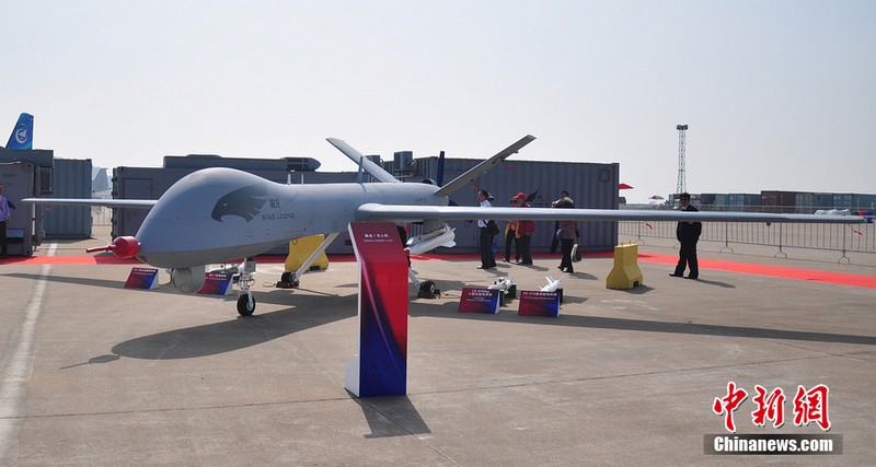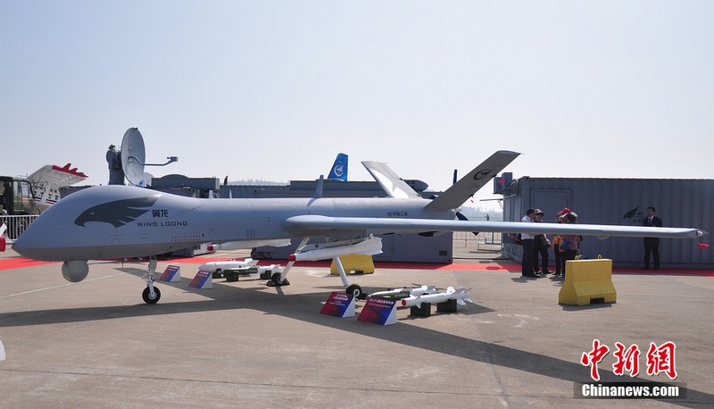 “翼龍”外形酷似美國“捕食者”無人機(jī),該款無人機(jī)由中航工業(yè)旗下成都飛機(jī)設(shè)計(jì)研究所研制,該機(jī)裝有一臺(tái)100馬力活塞發(fā)動(dòng)機(jī),具備全自主平輪式起降和飛行能力,最大起飛重量達(dá)1100公斤,最大續(xù)航時(shí)間為20個(gè)小時(shí),實(shí)用升限5000 米,可攜帶各種偵察、激光照射/測(cè)距、電子對(duì)抗設(shè)備及小型空地打擊武器,可執(zhí)行監(jiān)視、偵查及對(duì)地攻擊任務(wù)等任務(wù),也可用于維穩(wěn)、反恐、邊界巡邏等。