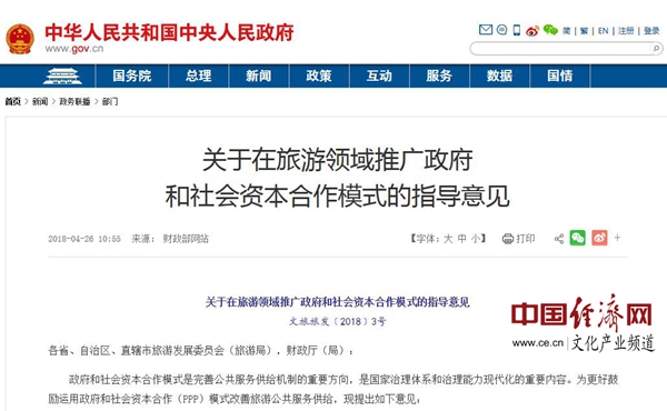 《關(guān)于在旅游領(lǐng)域推廣政府和社會資本合作模式的指導(dǎo)意見》