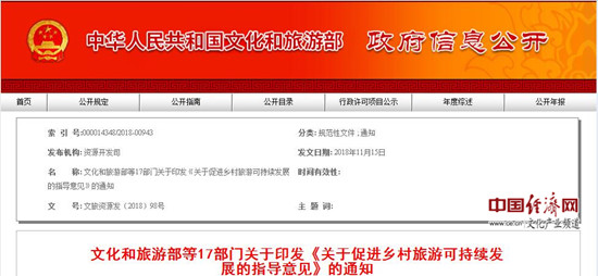 經(jīng)濟日報-中國經(jīng)濟網(wǎng)北京12月11日訊 為深入貫徹落實《中共中央 國務(wù)院關(guān)于實施鄉(xiāng)村振興戰(zhàn)略的意見》(中發(fā)〔2018〕1號)和《鄉(xiāng)村振興戰(zhàn)略規(guī)劃(2018-2022年)》,推動鄉(xiāng)村旅游提質(zhì)增效,促進鄉(xiāng)村旅游可持續(xù)發(fā)展,加快形成農(nóng)業(yè)農(nóng)村發(fā)展新動能,近日文化和旅游部等17部門聯(lián)合印發(fā)《關(guān)于促進鄉(xiāng)村旅游可持續(xù)發(fā)展的指導(dǎo)意見》(以下簡稱《意見》),《意見》提出,到2022年,旅游基礎(chǔ)設(shè)施和公共服務(wù)設(shè)施進一步完善,鄉(xiāng)村旅游服務(wù)質(zhì)量和水平全面提升,富農(nóng)惠農(nóng)作用更加凸顯,基本形成布局合理、類型多樣、功能完善、特色突出的鄉(xiāng)村旅游發(fā)展格局。