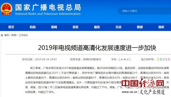 獲批高清播出電視頻道已達(dá)331個(gè) 高清化發(fā)展加快
