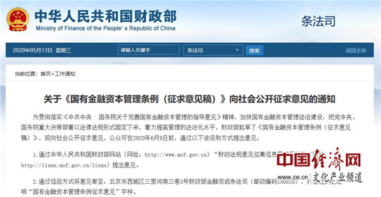 經(jīng)濟(jì)日報-中國經(jīng)濟(jì)網(wǎng)北京5月15日訊 日前,財政部起草了《國有金融資本管理?xiàng)l例(征求意見稿)》(以下簡稱《條例》),并于5月9日起向社會公開征求意見。《條例》分為12章,共105條,主要內(nèi)容包括出資人與受托人職責(zé)、國有金融機(jī)構(gòu)基本權(quán)利和義務(wù)、國有金融資本布局、收益管理、風(fēng)險防控、監(jiān)督管理等。