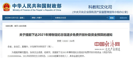 經濟日報-中國經濟網北京12月15日訊 近日,財政部官網發(fā)布了《關于提前下達2021年博物館紀念館逐步免費開放補助資金預算的通知》,31個?。ㄗ灾螀^(qū)、直轄市)及5個計劃單列市補助資金預算總計277605萬元。