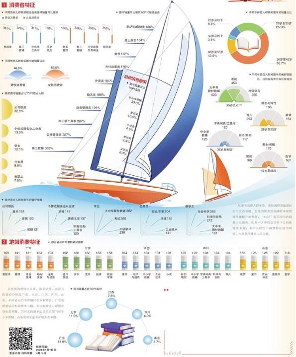 圖書是人們求知的階梯,也是不少人遇到現(xiàn)實(shí)問題時(shí),尋找解決途徑的重要選擇。無論是學(xué)生、職場人、管理者,還是年輕父母、中老年人,不同的閱讀偏好也體現(xiàn)出生活重心和關(guān)注點(diǎn)的區(qū)別。從圖書消費(fèi)人群來看,“80后”人群購買圖書的銷量占比最高,超過了50%。從圖書銷量及增長的占比情況來看,教輔類圖書最受歡迎,增長勢頭十分強(qiáng)勁。
