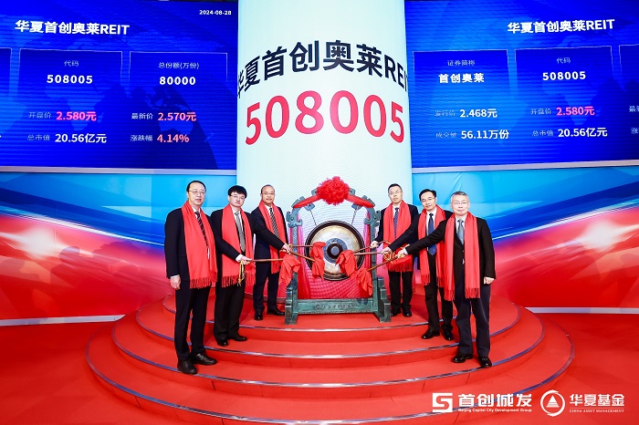 8月28日,首單以奧特萊斯作為底層資產(chǎn)的消費REITs——華夏首創(chuàng)奧萊REIT(基金代碼:508005)正式在上交所上市。北京市國有資產(chǎn)監(jiān)督管理委員會、山東省發(fā)展改革委、湖北省發(fā)展改革委、山東省濟南市歷城區(qū)政府等有關(guān)領(lǐng)導(dǎo),北京首都創(chuàng)業(yè)集團有限公司黨委書記、董事長劉永政,中信證券股份有限公司執(zhí)行委員、全球投資銀行管理委員會主任馬堯,華夏基金管理有限公司總經(jīng)理李一梅及托管銀行、合作機構(gòu)、投資者代表出席基金上市儀式。