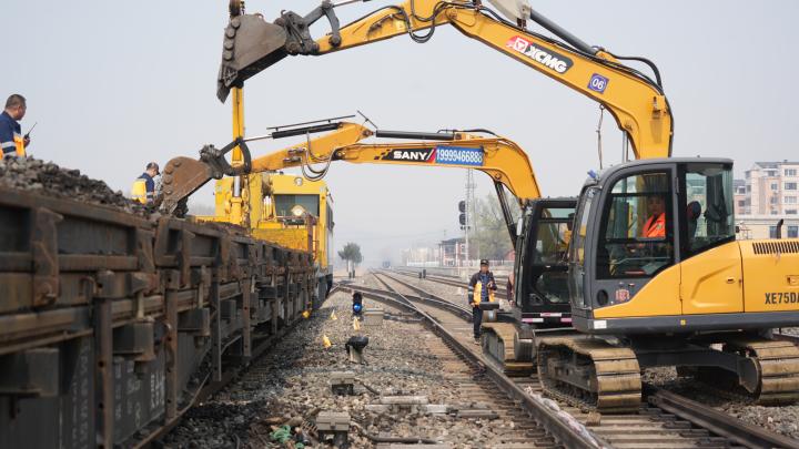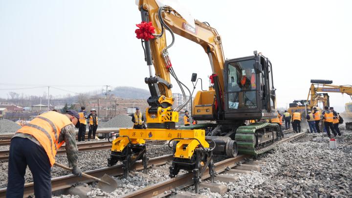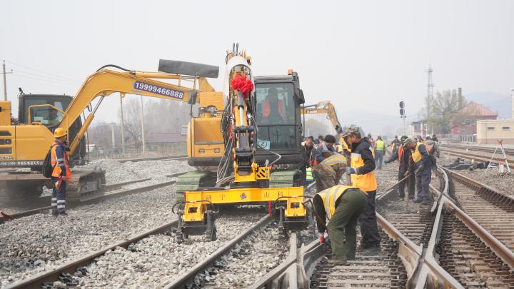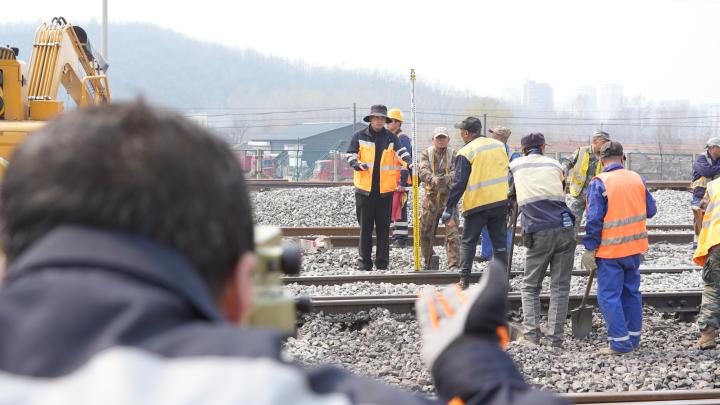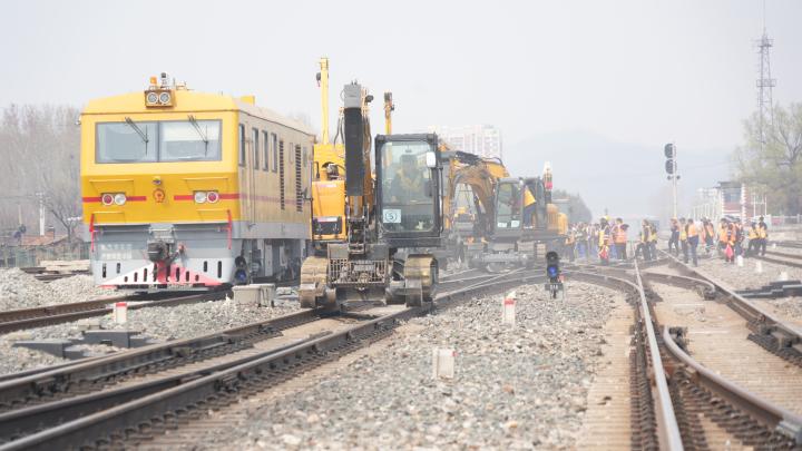 4月14日11時(shí)10分,在沈丹上行線石橋子站內(nèi)22號(hào)道岔旁人頭攢動(dòng),機(jī)械轟鳴,循聲望去,一臺(tái)道岔清篩鉤機(jī)、一臺(tái)搗固鉤機(jī)以及三臺(tái)配備精細(xì)篩網(wǎng)的鉤機(jī)已按預(yù)定方案就位,與此同時(shí),來自丹東工務(wù)段石橋子線路車間70余名干部職工身著黃色工作服,手拿撬棍、鐵鍬,在線路兩旁排隊(duì)等候施工命令的下達(dá),一場以機(jī)械為主力、人工作業(yè)精準(zhǔn)配合的道岔機(jī)械清篩施工即將有序展開。