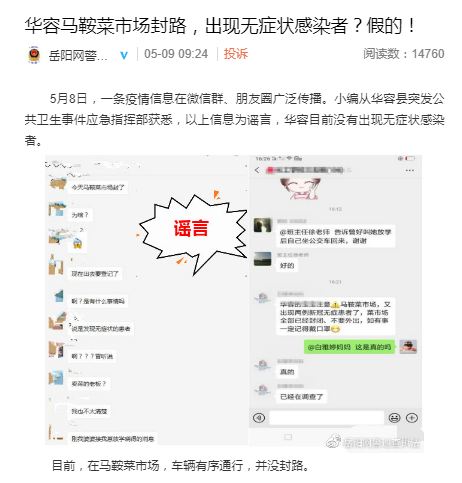 謠言粉碎機三:岳陽華容縣馬鞍菜市場封路,出現(xiàn)無癥狀感染者?假的!