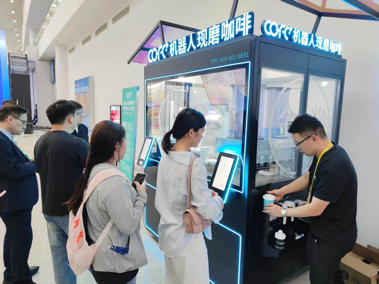 機(jī)器人現(xiàn)磨咖啡約50秒即可制作完成,成為現(xiàn)場的餐飲“打卡點(diǎn)”。 中國經(jīng)濟(jì)網(wǎng)記者梁木攝