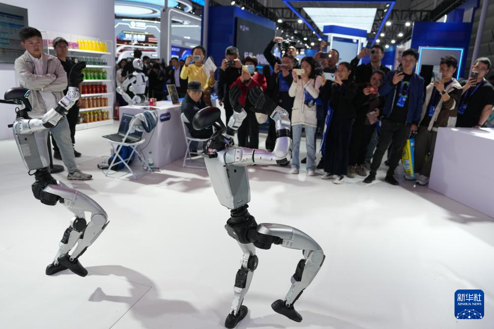 11月6日,觀(guān)眾在2025年世界互聯(lián)網(wǎng)大會(huì)“互聯(lián)網(wǎng)之光”博覽會(huì)現(xiàn)場(chǎng)觀(guān)摩人形機(jī)器人跳舞。新華社記者 黃宗治 攝