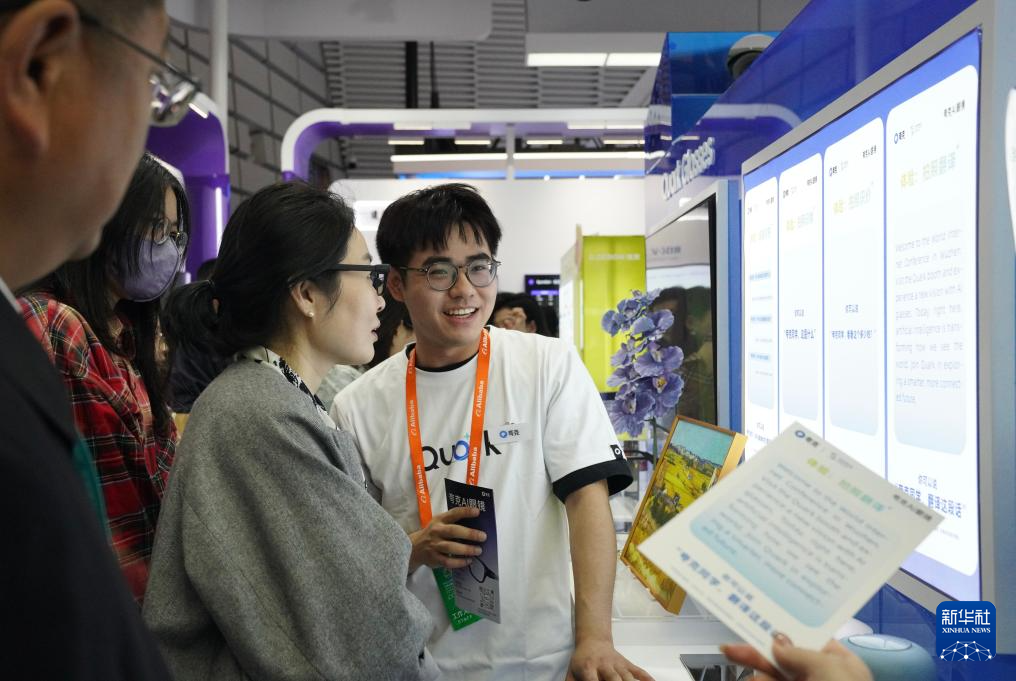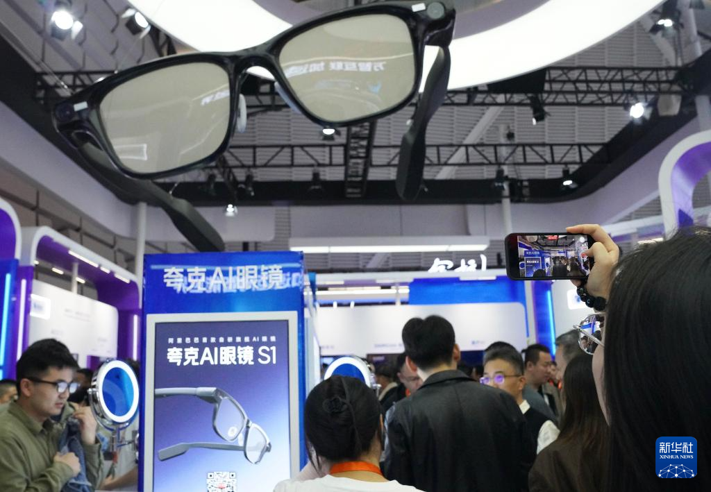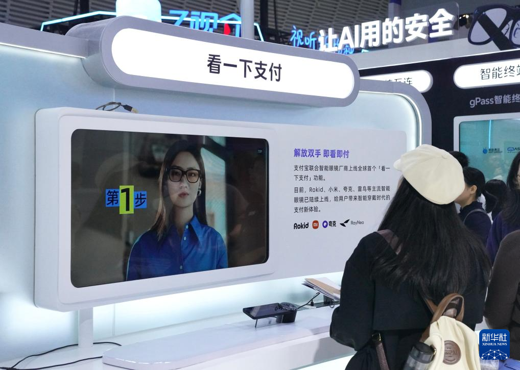 11月6日,觀(guān)眾在2025年世界互聯(lián)網(wǎng)大會(huì)“互聯(lián)網(wǎng)之光”博覽會(huì)現(xiàn)場(chǎng)的AI眼鏡展臺(tái)試戴AI眼鏡。新華社記者 劉瓊 攝