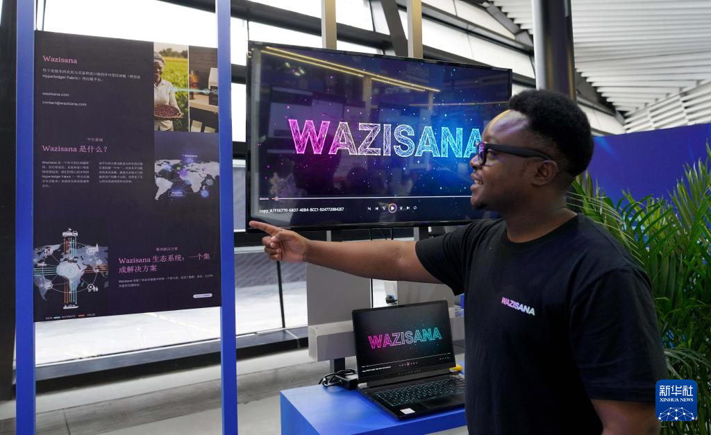 11月6日,來(lái)自津巴布韋的參展商在推介一款自主研發(fā)的供應(yīng)鏈平臺(tái)。該平臺(tái)可用于連接非洲農(nóng)民與買(mǎi)家和進(jìn)口商。他希望將非洲的農(nóng)產(chǎn)品通過(guò)平臺(tái)更多地銷(xiāo)往中國(guó)。新華社記者趙宇思攝