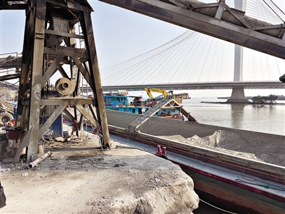 該臨時碼頭自建占地約400畝,未經(jīng)過正規(guī)審批,形成以砂石、水泥、粉煤灰、預(yù)拌混凝土、砂漿等為主的建材中轉(zhuǎn)產(chǎn)業(yè)集群。