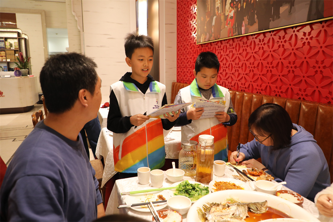 志愿者們還學(xué)以致用,化身“制止餐飲浪費(fèi)宣傳員”,向餐廳中的食客宣傳節(jié)糧反浪費(fèi)知識(shí),發(fā)放節(jié)糧知識(shí)宣傳單,并邀請(qǐng)食客寫下自己節(jié)約糧食和避免浪費(fèi)的心得。在店食客積極參與留言并對(duì)小志愿者的宣講表示認(rèn)同。