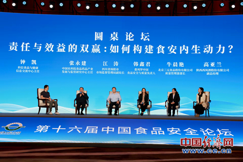 9月11日,由經(jīng)濟日報社主辦、中國經(jīng)濟網(wǎng)承辦,主題為“尚德守法 共享食安”的第十六屆中國食品安全論壇在京舉辦。在圓桌論壇環(huán)節(jié),多位嘉賓就“責任與效益的雙贏:如何構建食安內(nèi)生動力?”話題進行了分享。