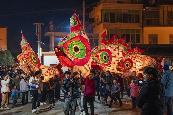 不嬉不行,那么誰來嬉?在這里,早年間由有威望的中老年人做主,如今,青年成為“挑大梁”的角色。每年大年初三過后,當(dāng)?shù)匾宰陟魟澐值?家魚會推選出一名15至28歲的年輕人為“魚頭”,負責(zé)本會“嬉魚”的各項事務(wù),奔走籌措經(jīng)費、上山砍竹扎制魚燈。走出大山的汪滿田人,被這一民俗牽引,歲末總要回來化身一條條璀璨的“魚”,為魚燈的傳承獻力。