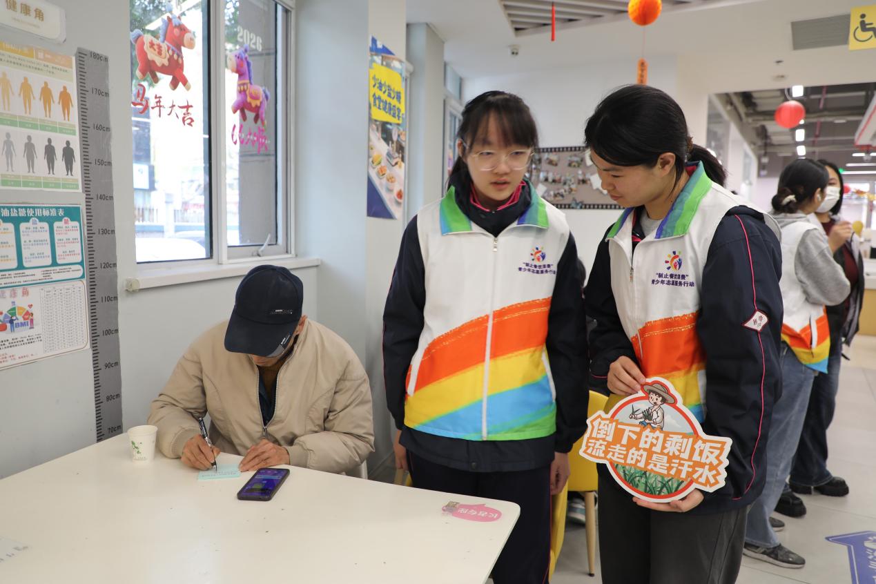 志愿者們積極參與“制止餐飲浪費(fèi)”青少年志愿服務(wù)行動(dòng)。 中國(guó)經(jīng)濟(jì)網(wǎng) 王巖/攝