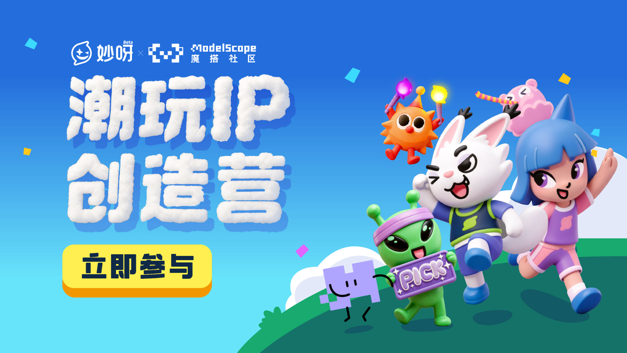 即日起,妙呀Beta版開(kāi)啟限量?jī)?nèi)測(cè),創(chuàng)作者可通過(guò)妙呀官網(wǎng)(https://www.miaoyaai.cn/)和妙呀官方公眾號(hào)(https://modelscope.cn/events/226)申請(qǐng)內(nèi)測(cè)邀請(qǐng)碼。為有效支持新銳潮玩創(chuàng)作者的成長(zhǎng),妙呀聯(lián)合魔搭社區(qū)同步啟動(dòng)“潮玩IP創(chuàng)造營(yíng)”計(jì)劃,提供專屬曝光通道與系統(tǒng)性孵化資源,讓每一份原創(chuàng)靈感都有機(jī)會(huì)被看見(jiàn)、被認(rèn)可。