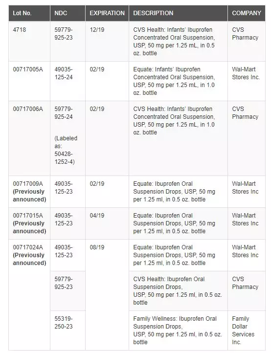 該公司在一份聲明中說(shuō),召回是基于健康危害評(píng)估。濃度較高的布洛芬“可能出現(xiàn)的不良反應(yīng)是惡心,嘔吐,上腹部疼痛,或更罕見(jiàn)的腹瀉。甚至耳鳴,或耳鳴,頭痛和胃腸道出血?!?/p>