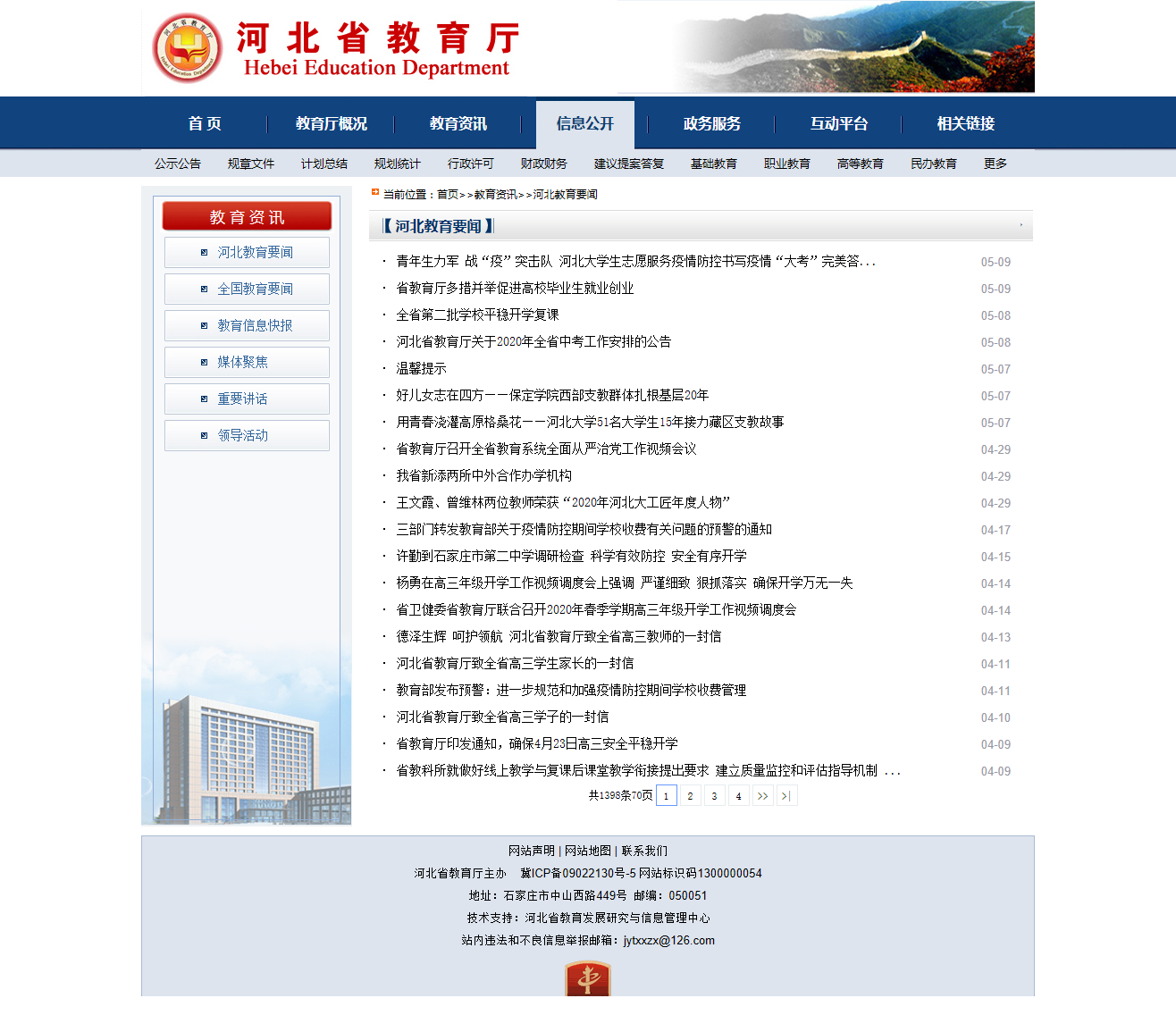 記者發(fā)現(xiàn),在河北省教育廳官網(wǎng),5月7日,其教育資訊欄只發(fā)布了3篇文章,分別為《溫馨提示》《好兒女志在四方——保定學院西部支教群體扎根基層20年》《用青春澆灌高原格?;ā颖贝髮W51名大學生15年接力藏區(qū)支教故事》,并無上面所謂的兩則通知。