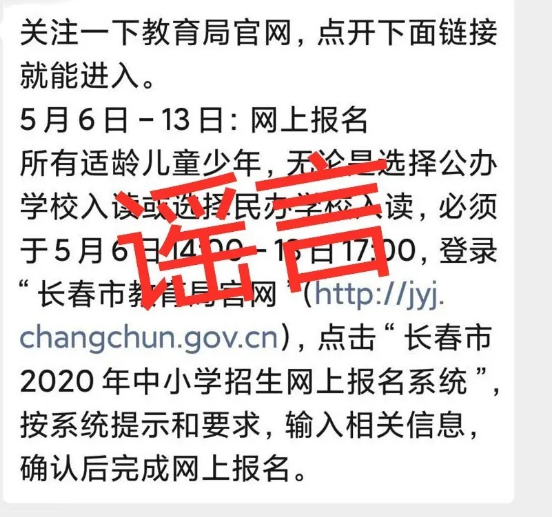 謠言粉碎機三:長春5月6日-13日義務(wù)教育招生報名?假的!