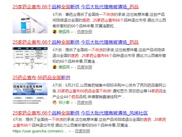因此,日前有個別媒體報道稱“25家藥企宣布66個藥品全國斷供”。經(jīng)濟日報-中國經(jīng)濟網(wǎng)記者梳理發(fā)現(xiàn),“66個藥品品規(guī)全國斷供”這種說法并不成立,目前藥品仍在全國供應。
