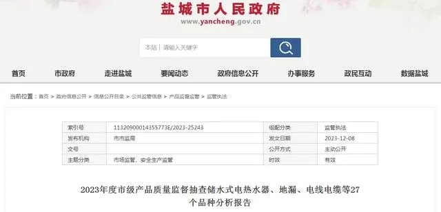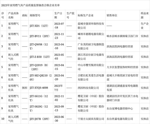 2023年度鹽城市市場(chǎng)監(jiān)督管理局委托南京市產(chǎn)品質(zhì)量監(jiān)督檢驗(yàn)院(南京市質(zhì)量發(fā)展與先進(jìn)技術(shù)應(yīng)用研究院)組織實(shí)施家用燃?xì)饩弋a(chǎn)品市級(jí)監(jiān)督抽查。本次抽查計(jì)劃10批次,抽到10批次,經(jīng)檢驗(yàn)合格10批次。